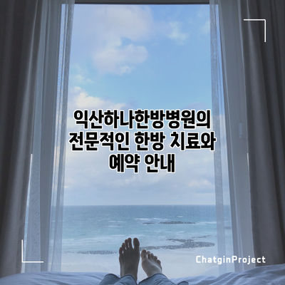 익산하나한방병원의 전문적인 한방 치료와 예약 안내