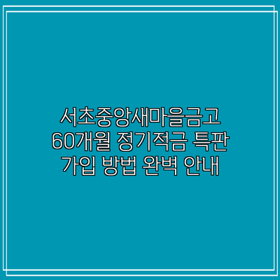 서초중앙새마을금고 60개월 정기적금 특판 가입 방법 완벽 안내