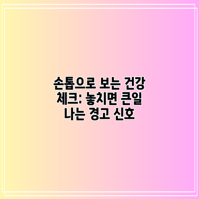 손톱은 단순한 신체의 일부분이 아닌, 우리의 건강 상태를 반영하는 중요한 신호로 작용합니다. 손톱으로 보는 건강 체크는 놓치면 큰일 나는 경고 신호입니다. 손톱의 변화는 여러 가지 건강 문제의 징후일 수 있으니 주의 깊게 살펴보는 것이 필요합니다. 이번 포스트에서는 손톱을 통해 건강 체크를 하는 방법과 그 중요성에 대해 알아보겠습니다.