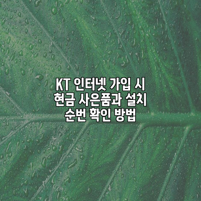 KT 인터넷 가입은 현금 사은품과 설치 순번 관리가 중요해요. 성공적으로 사은품을 최대한 받을 수 있는 방법은 사전 비교와 계획 설정이에요. 또한, 설치 일정과 준비 사항을 사전에 점검하면 문제 없이 서비스를 이용할 수 있답니다.