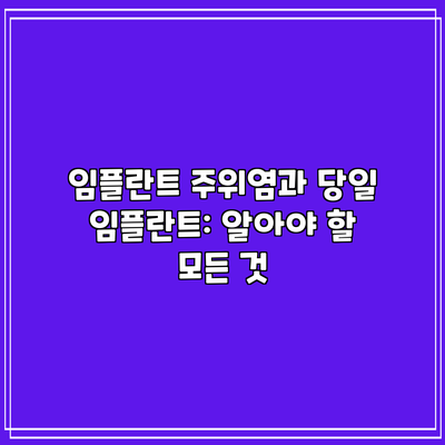 임플란트를 시행하기 전, 임플란트 주위염과 당일 임플란트의 기본 개념을 이해하는 것이 중요합니다. 임플란트 주위염은 예방이 가능하며, 초기 증상을 인지하고 적절한 조치를 취하는 것이 무엇보다 중요합니다. 여러분의 구강 건강을 위해 정기적인 검진을 받는 것이 좋습니다. 구체적인 질문이나 치료 계획에 대한 상담은 항상 전문가와 상의해주세요.