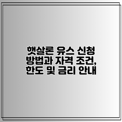햇살론 유스 신청 방법과 자격 조건, 한도 및 금리 안내