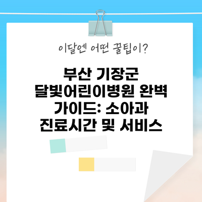 부산 기장군 달빛어린이병원 완벽 가이드: 소아과 진료시간 및 서비스