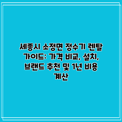 세종시 소정면 정수기 렌탈 가이드: 가격 비교, 설치, 브랜드 추천 및 1년 비용 계산