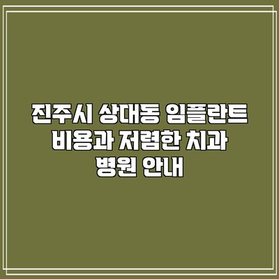 진주시 상대동 임플란트 비용과 저렴한 치과 병원 안내